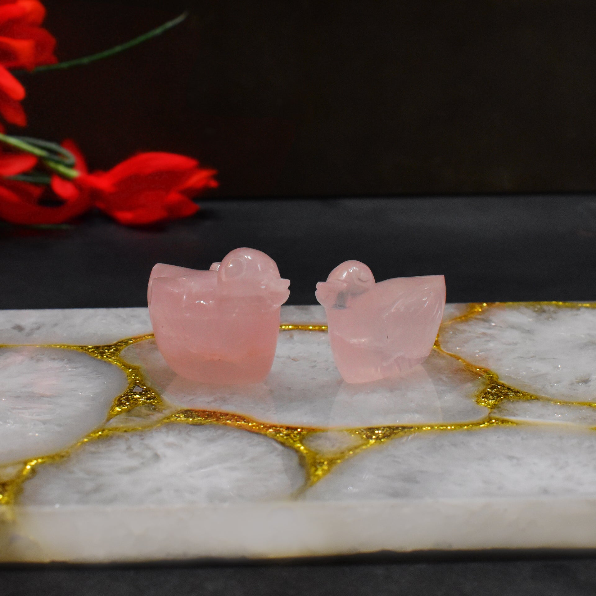 Natural Rose Quartz Mandarin Ducks | Natural Rose Quartz Stone Boost Feelings of Self-Love and Foster Loving Relationships with Others ( 50-60 Gm)