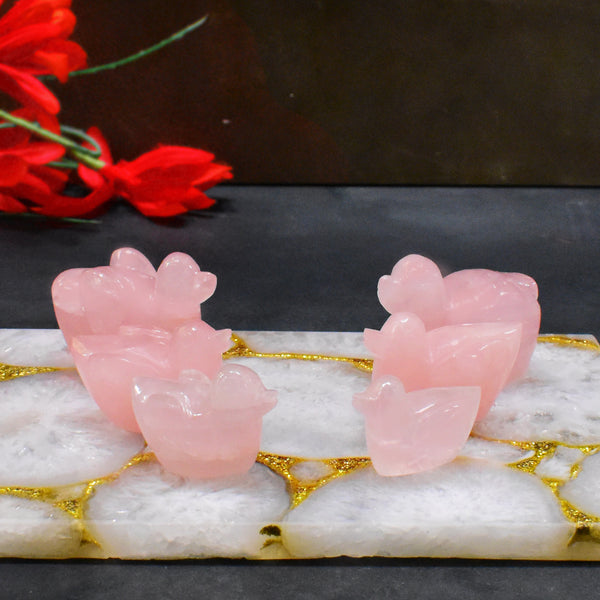 Natural Rose Quartz Mandarin Ducks | Natural Rose Quartz Stone Boost Feelings of Self-Love and Foster Loving Relationships with Others ( 80-100 Gm)