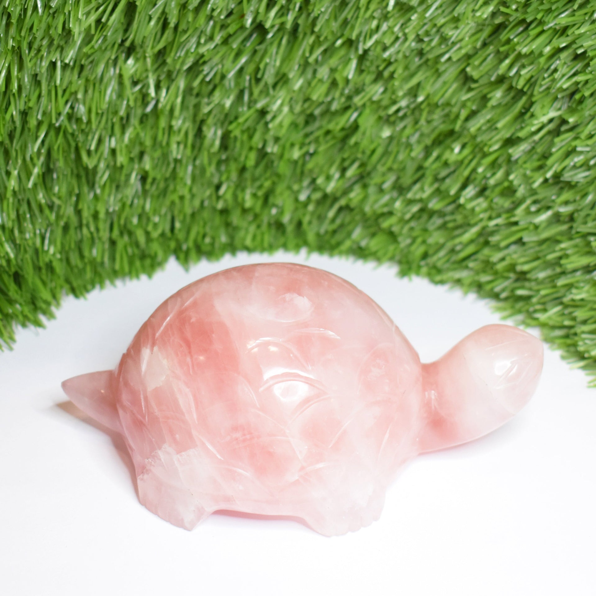 Natural Rose Quartz Tortoise Statue Figurine to Attract Unconditional Love and Infinite Peace