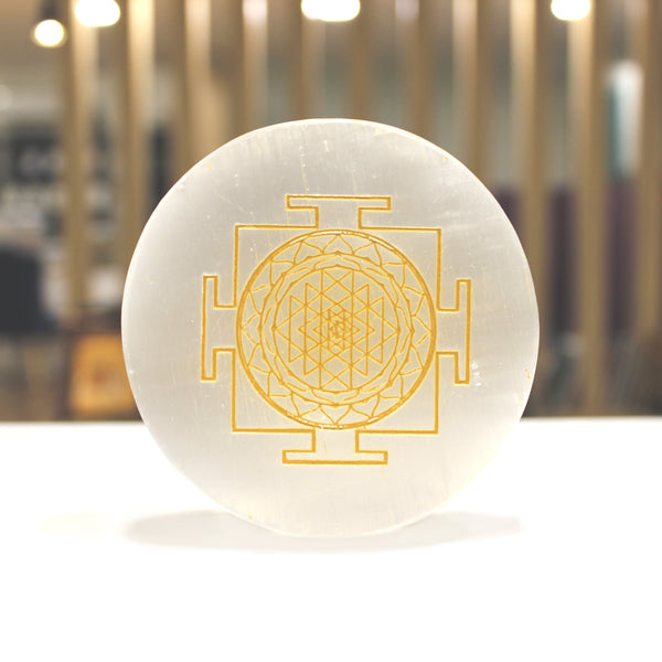 Natural Shri Yantra Selenite Charging Plate | Natural Shri Yantra Selenite Charging Plate Clears Blocked Energy and Brings the Spiritual as well as Material Wealth