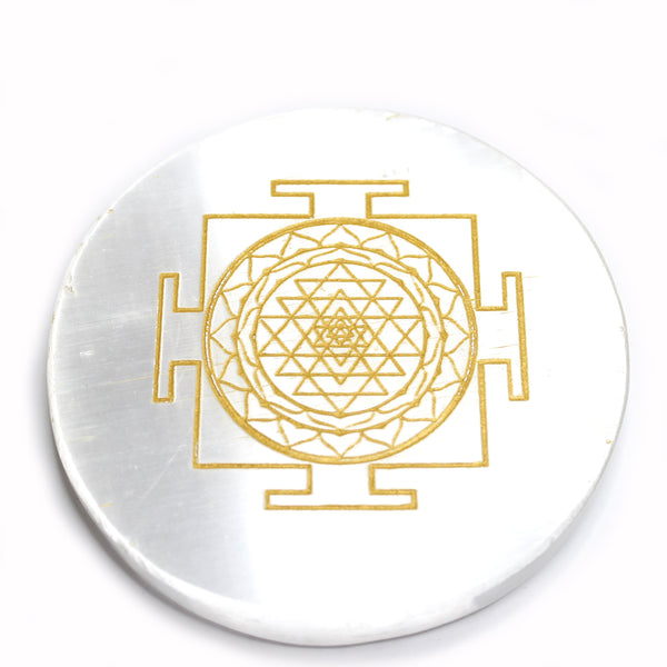 Natural Shri Yantra Selenite Charging Plate | Natural Shri Yantra Selenite Charging Plate Clears Blocked Energy and Brings the Spiritual as well as Material Wealth