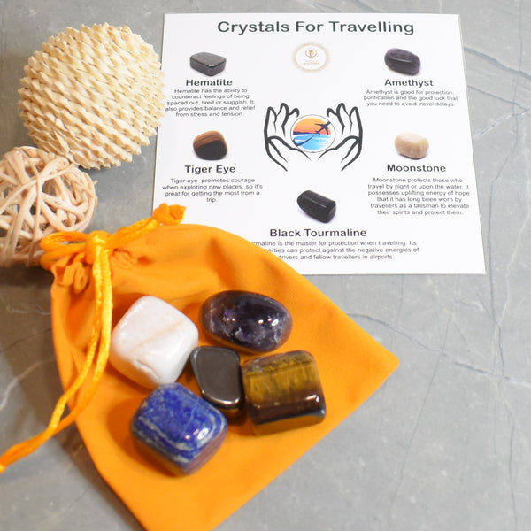 Natural Tumble Stone Traveling Kit | Natural Healing Tumble Stone Kit to help Good luck and safe Travels