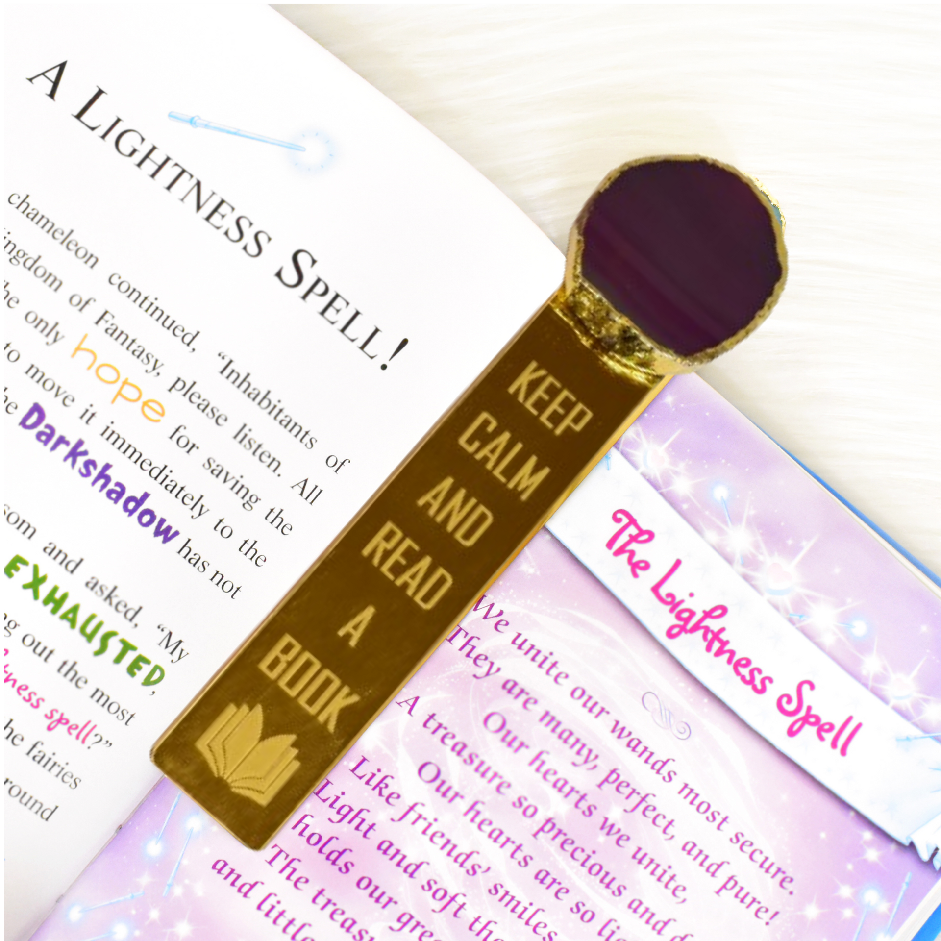 Maureen Amethyst Stone Bookmark | Gold Color Plated Acrylic Plate | Natural Amethyst Luxury Bookmark