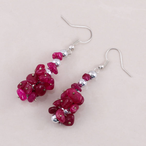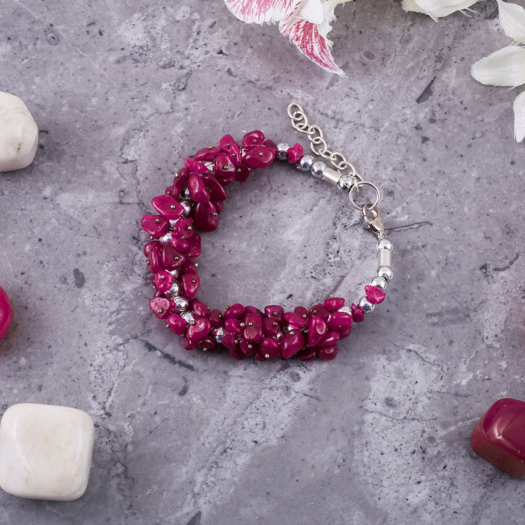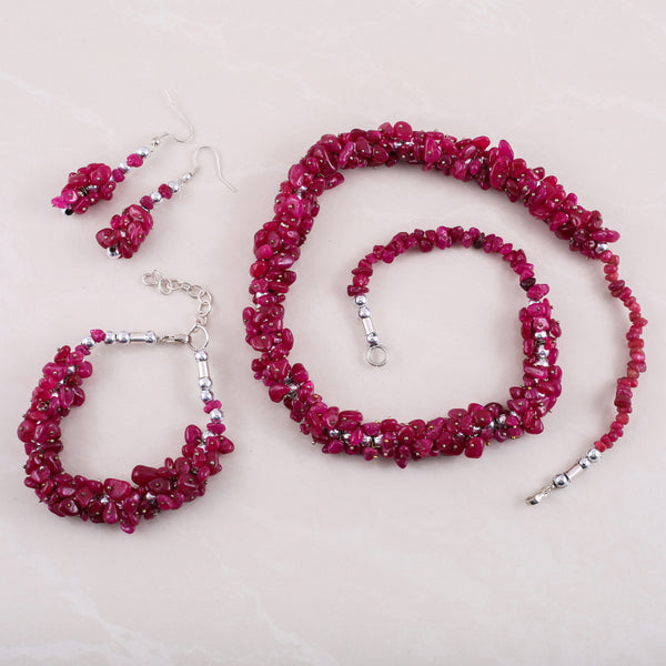 Maureen Dyed Red Chips Necklace Set | Natural Stone Chips Earings | Natural Stone Chips Bracelet