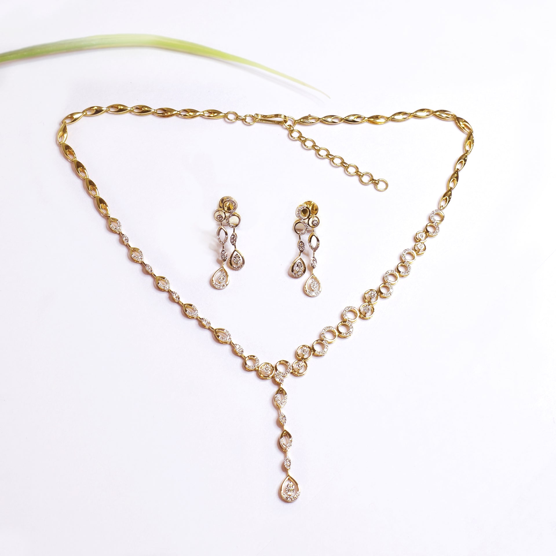 Maureen Yellow Gold Diamond Necklace Set - DS45