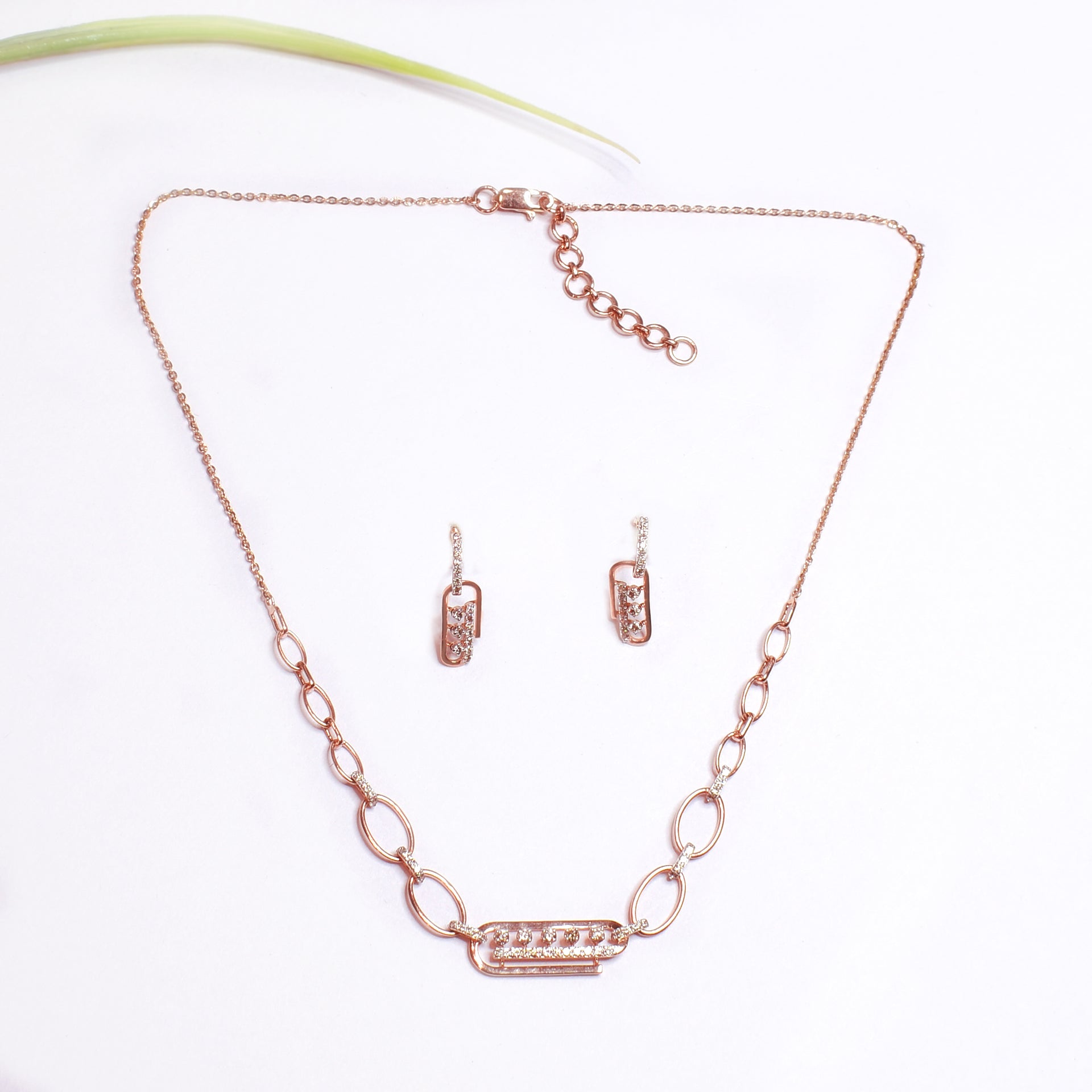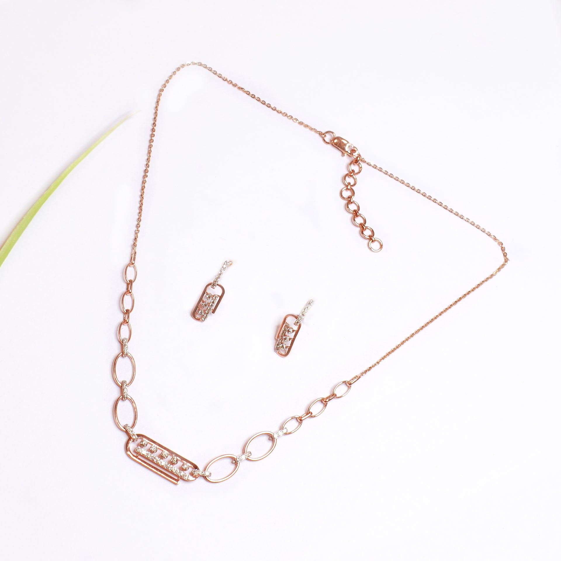 Maureen Rose Gold Diamond Necklace Set - DS58
