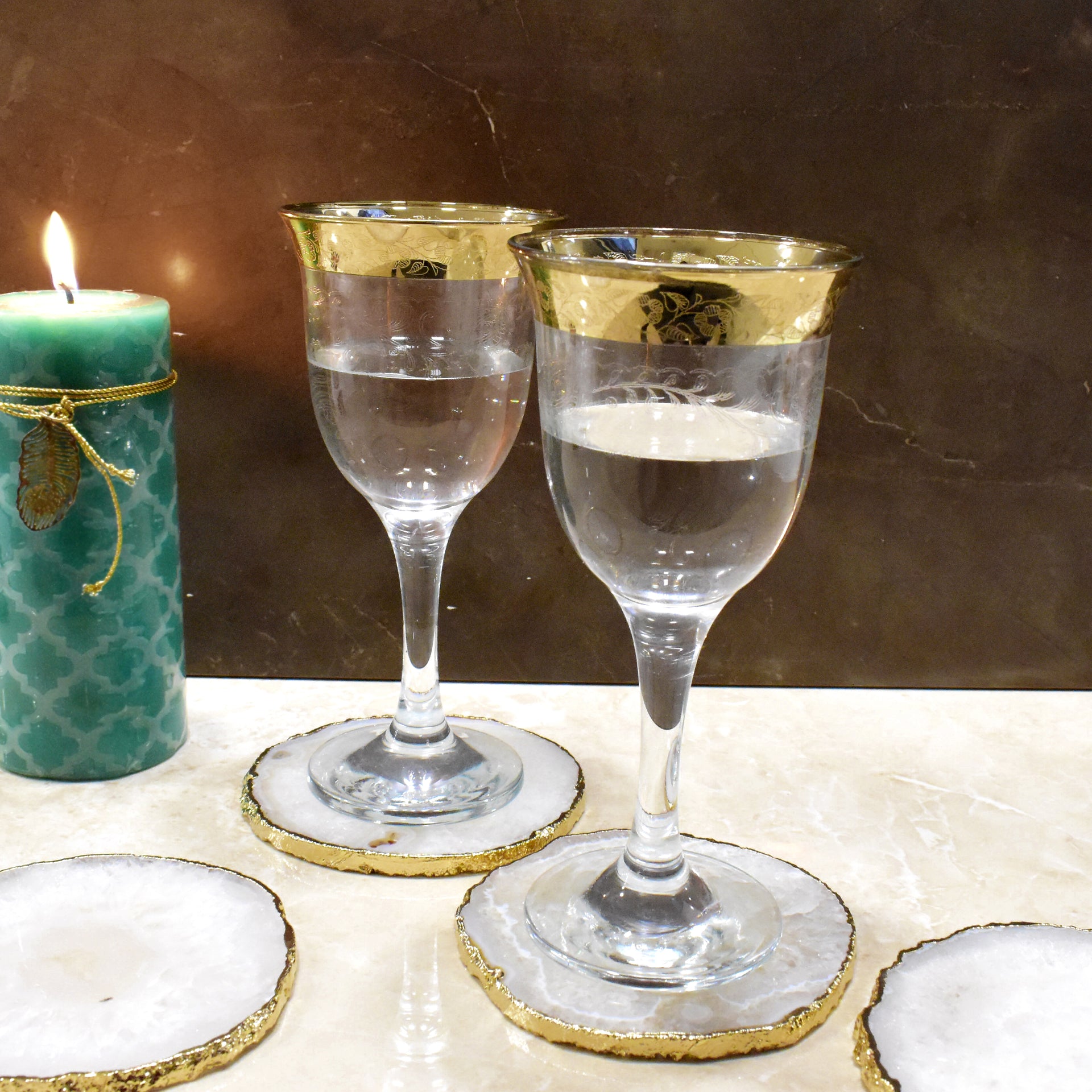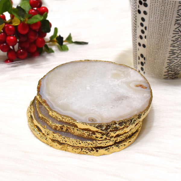 Maureen Natural Agate Coaster with Golden Electroplating | Agate Coaster Free Shape with Golden Electroplated Edges ( 4 inch )
