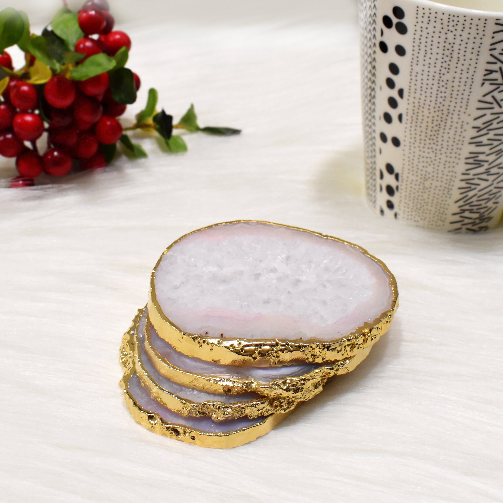 Maureen Natural Agate Coaster with Golden Electroplating | Agate Coaster Free Shape with Golden Electroplated Edges ( 3 inch )
