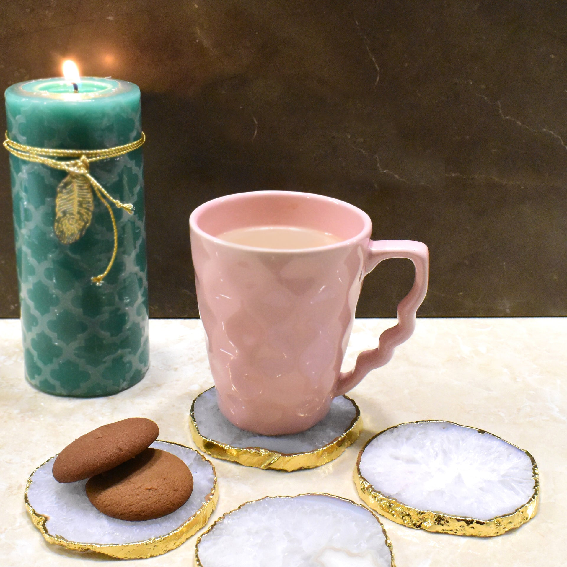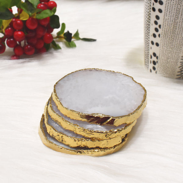 Maureen Natural Agate Coaster with Golden Electroplating | Agate Coaster Free Shape with Golden Electroplated Edges