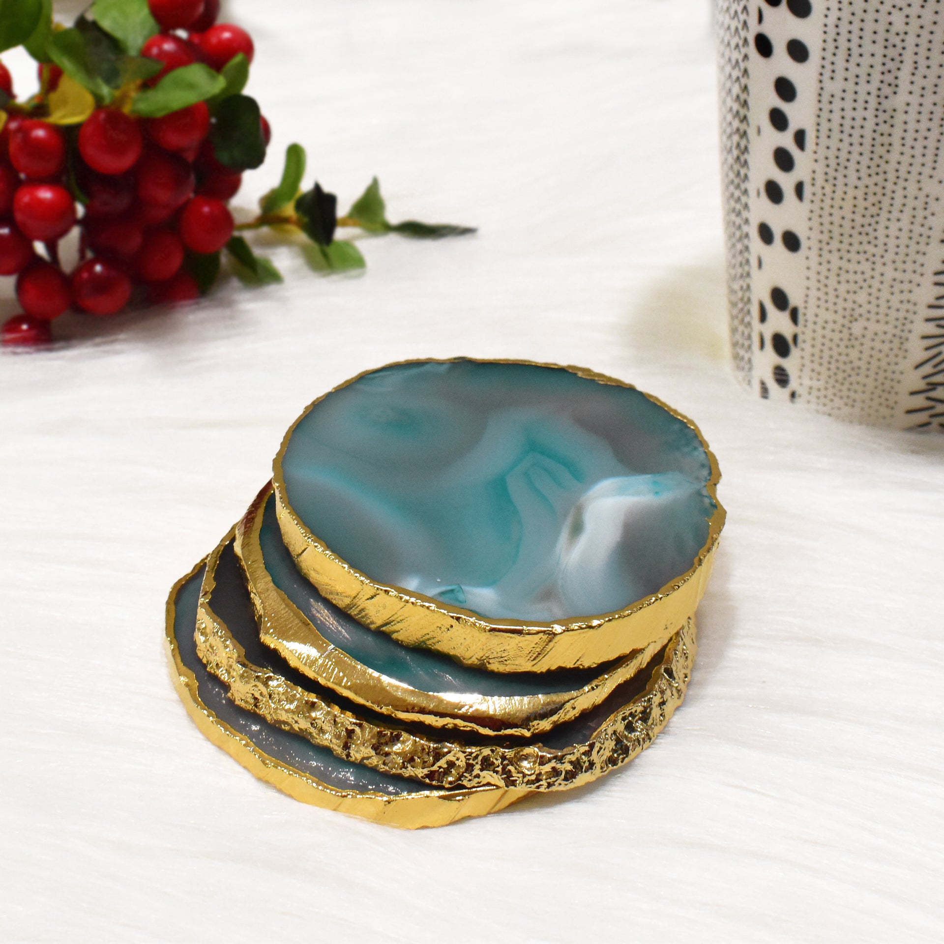 Maureen Natural Agate Coaster with Golden Electroplating | Agate Coaster Free Shape with Golden Electroplated Edges ( 3 inch )