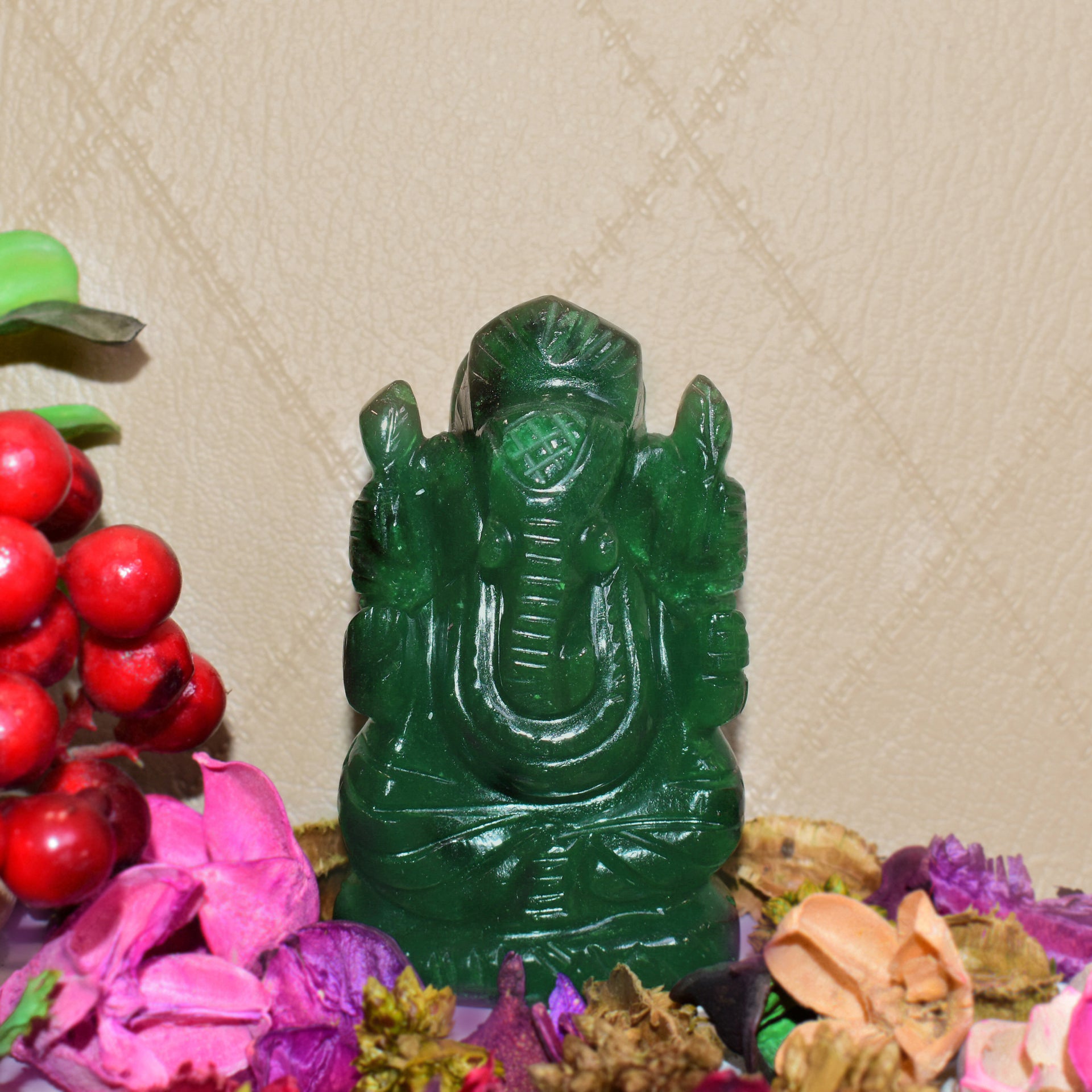 Natural Green Aventurine Lord Ganesha Idol Crystal Stone Religious Idol for Reiki Healing, Chakra Balancing, Gifting Purpose
