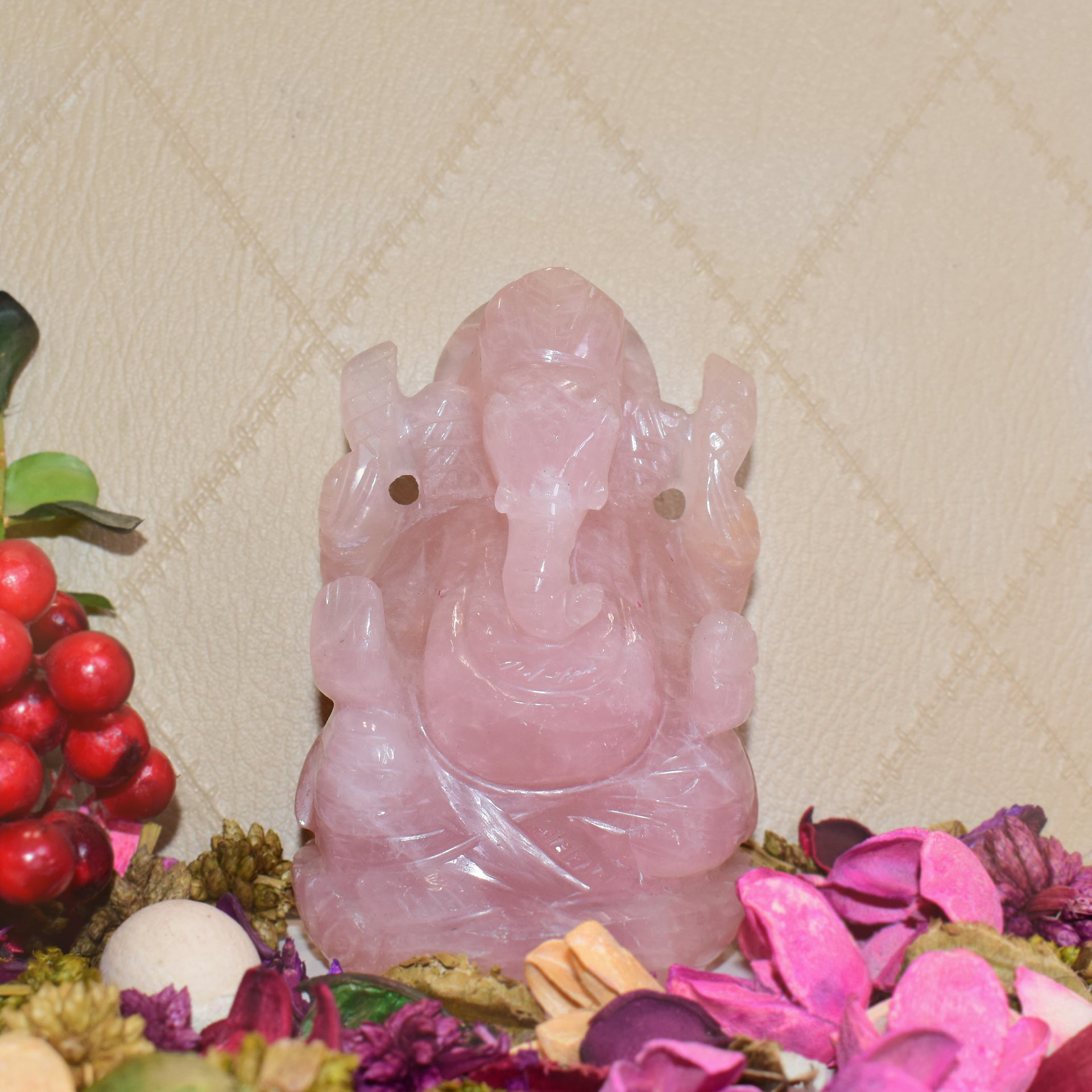 Natural Rose Quartz Lord Ganesha Idol Crystal Stone Religious Idol for Reiki Healing, Chakra Balancing, Gifting Purpose