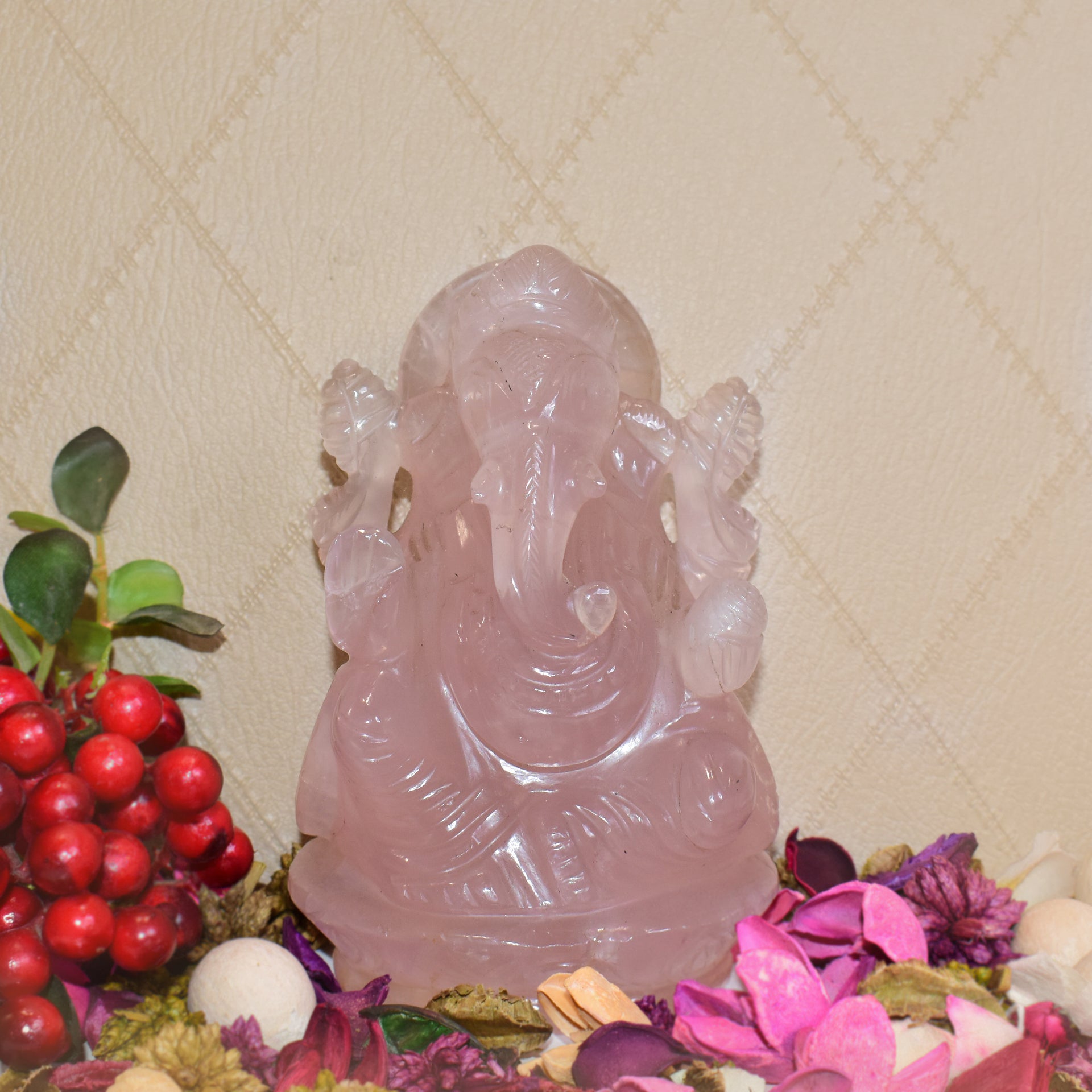 Worshiping Lord Ganesha removes all obstacles and obstacles. According to religious beliefs, where Lord Ganesha resides. Riddhi, Siddhi, auspiciousness and profit also reside there. According to Vastu, keeping the idol of Lord Ganesha at home maintains positivity. Rose quartz is known as a healing crystal...