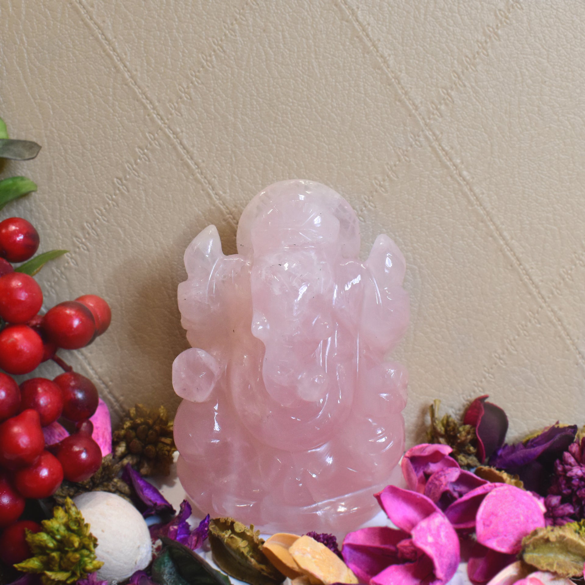 Natural Rose Quartz Lord Ganesha Idol Crystal Stone Religious Idol for Reiki Healing, Chakra Balancing, Gifting Purpose