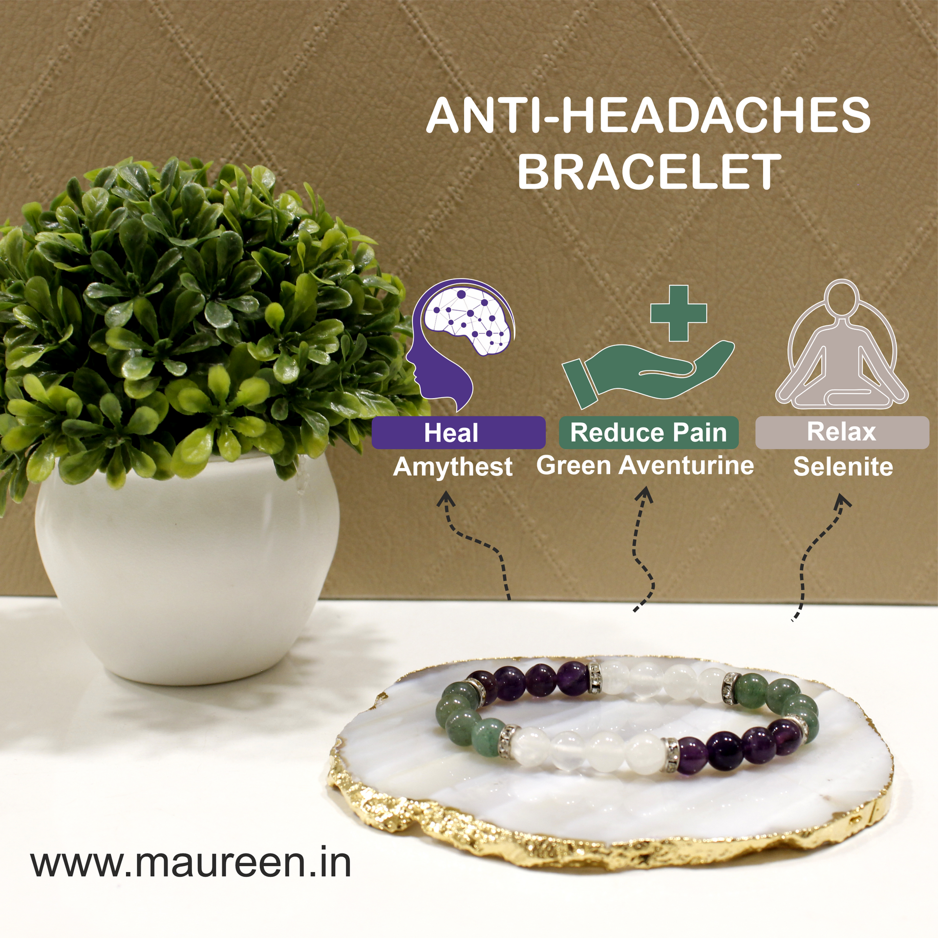Maureen Natural Anti Headaches Mix Stone Bracelet combination of 3 Magical Stone Amethyst, Green Aventurine & Selenite for Men & Women. Amethyst has a highly calming energy. It's a stone that knows how to balance, soothe, and bring you back to the spiritual center. For those...