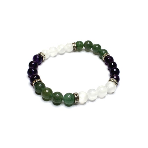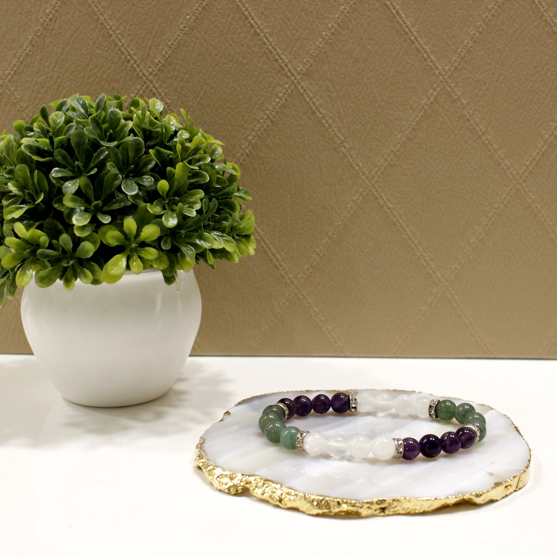 Maureen Natural Anti Headaches Mix Stone Bracelet combination of 3 Magical Stone Amethyst, Green Aventurine & Selenite for Men & Women