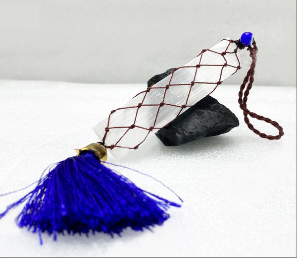 Maureen Selenite Rough Chunks with Evil Eye Blue Tassels Vastu Door Hanging for Home
