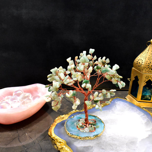 Maureen Natural Green Aventurine Stone Tree With Coaster Base for Reiki Healing, Good Luck, Home Office Decor