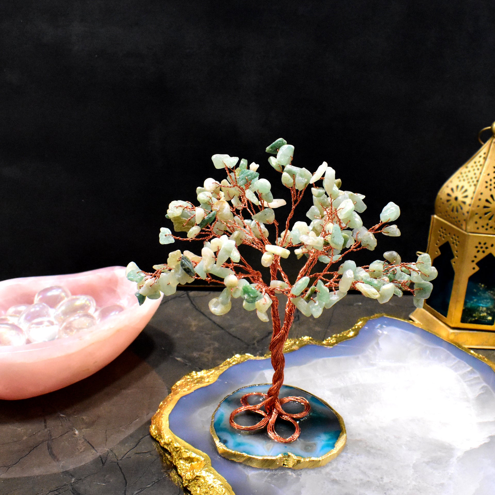 Maureen Natural Green Aventurine Stone Tree With Coaster Base for Reiki Healing, Good Luck, Home Office Decor