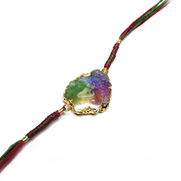 Maureen Gold Plated Solar Agate Rakhi | Natural Solar Agate Rakhi for Bhai | Solar Agate Rakhi for Brother
