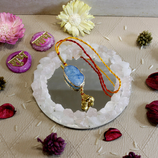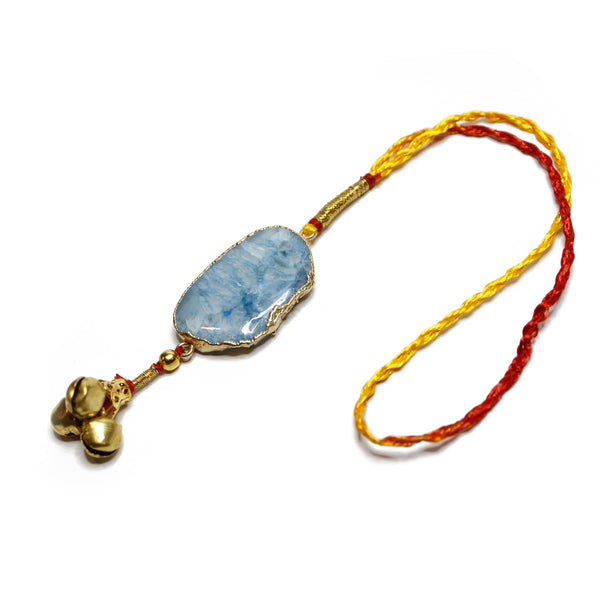 Maureen Natural Agate Stone Moli Lumba with Hanging | Natural Semi Precious Stone Lumba for Bhabhi | Agate Lumba Thread with Ghungru