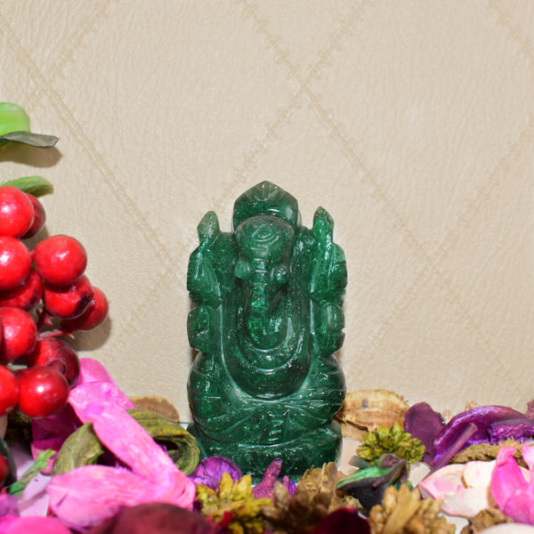 Natural Green Aventurine Lord Ganesha Idol Crystal Stone Religious Idol for Reiki Healing, Chakra Balancing, Gifting Purpose